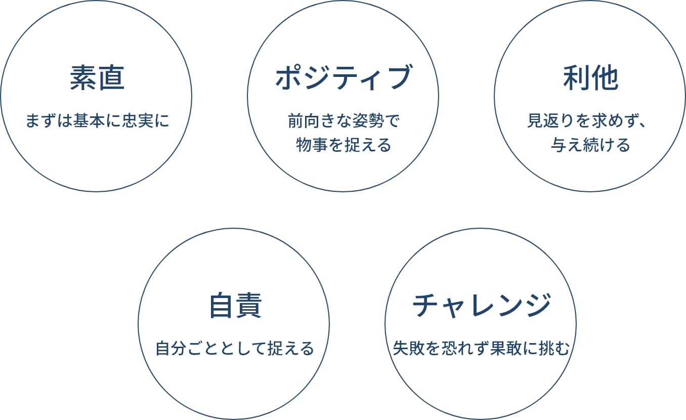 私たちはビジネスを通じて果たすべき使命、目指す未来、社員の行動指針を